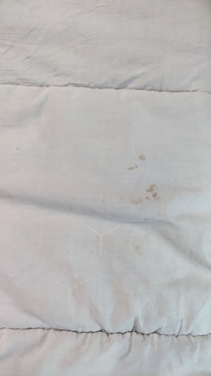 Couette chaude et confortable idéal pour les nuits froides . Elle est en bon état général mais présente quelques petites taches et usure voir photo. Dimensions : environ 120*180 cm Prix négociable .