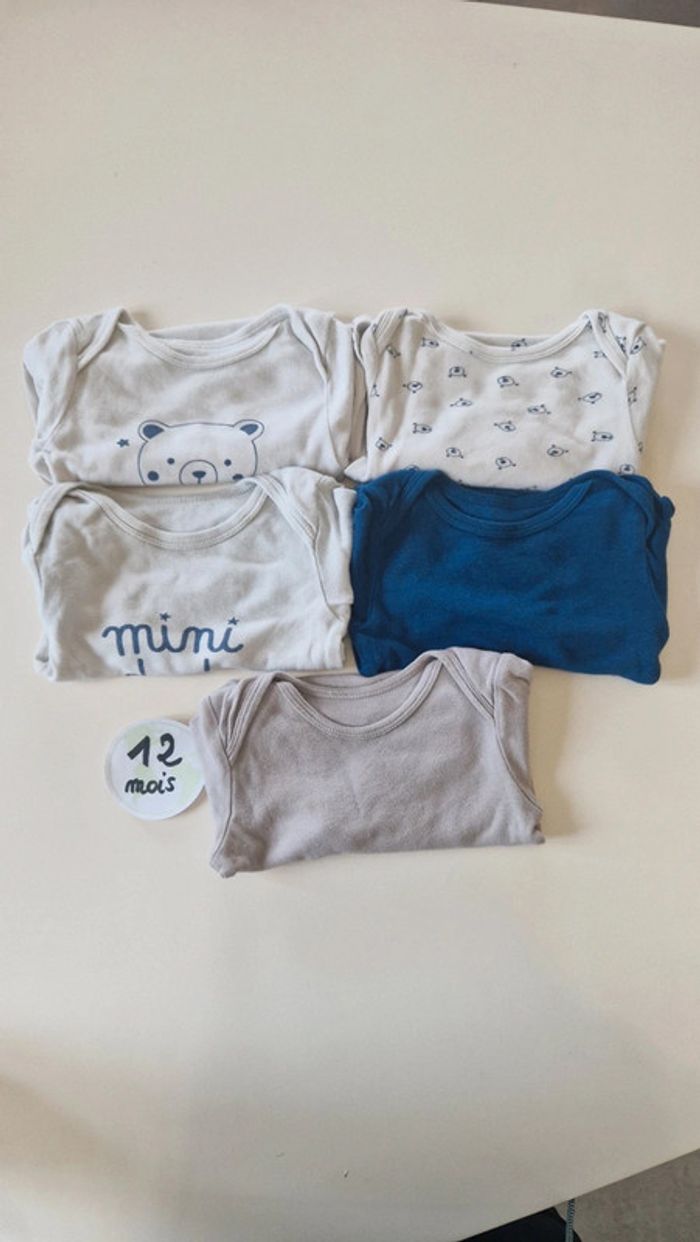 Lot de 5 bodies 12 mois kiabi