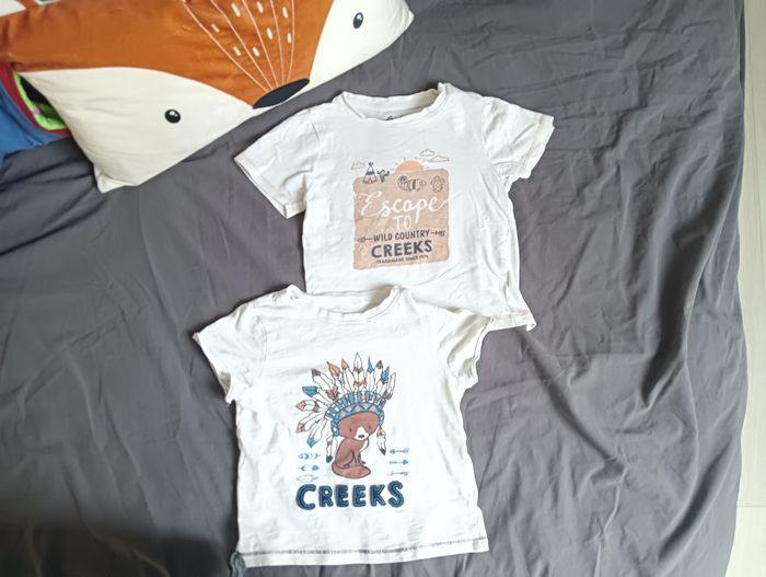 🌀 Lot 2 t-shirts garçon taille 36 mois. Marque "Creeks" Manches courtes - 100% coton ▪️Les 2 t-shirts sont en bon état. 🔸Les T-shirts disposent de boutons pression en haut du col pour plus de facilité à l'enfiler.