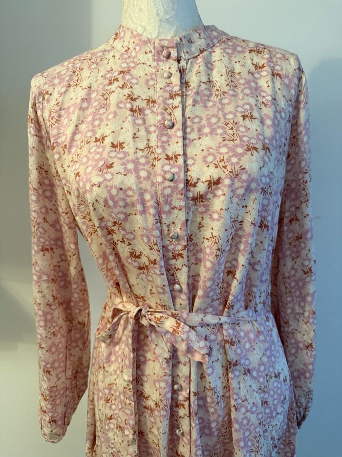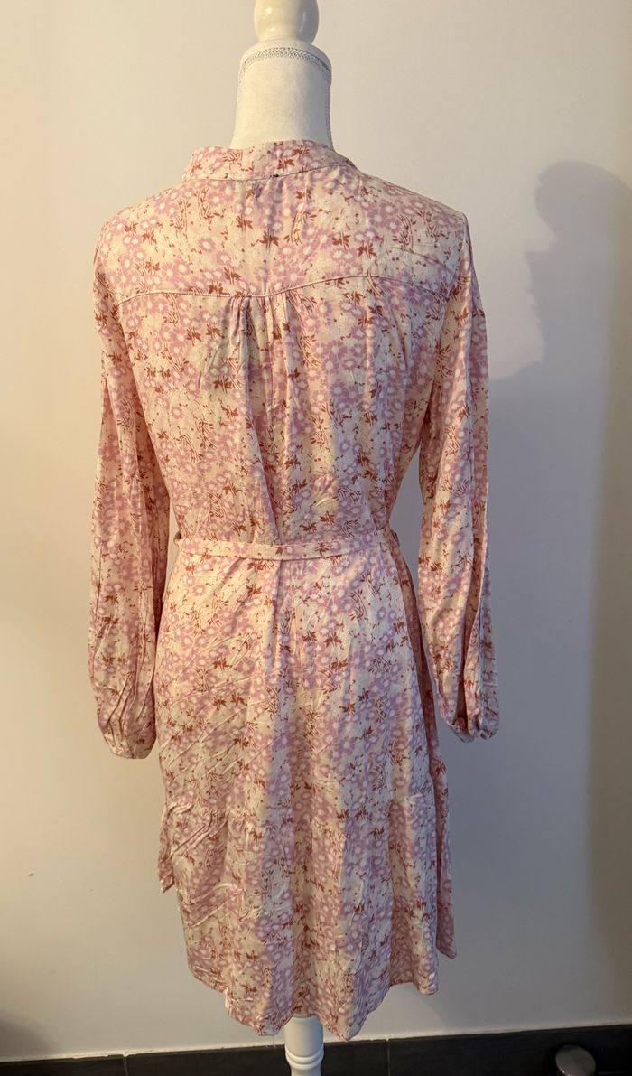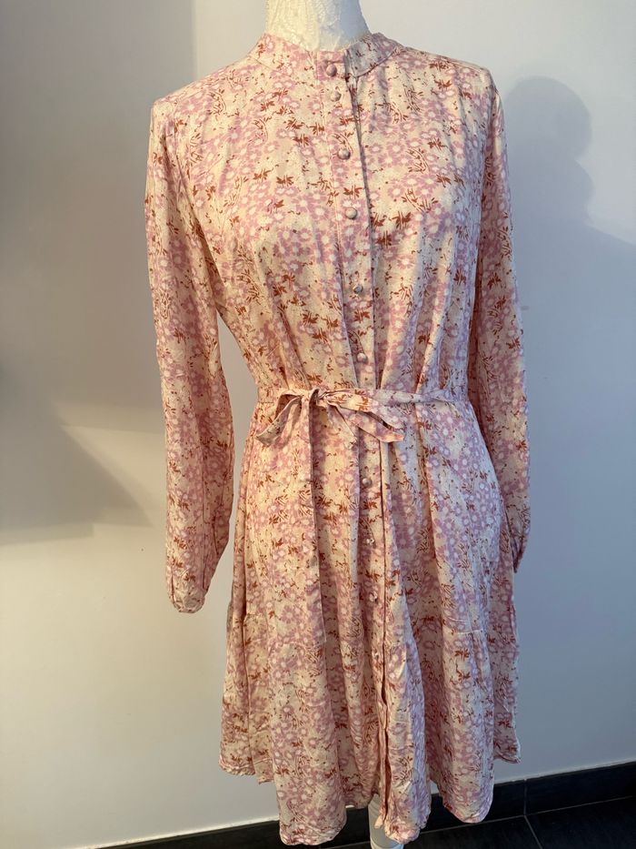Robe Tunique ESMARA, tendance, confortable et facile à porter. Parfaite pour un look casual ou chic 😍 🧥 Marque : ESMARA 📏 Taille : 44 📐 Hauteur 92cm 🌟 État : Neuf ✅Détails : Boutonnée sur toute la longueur avec une ceinture en tissu à nouer 🎨 Couleur :rose et beige à motif florale