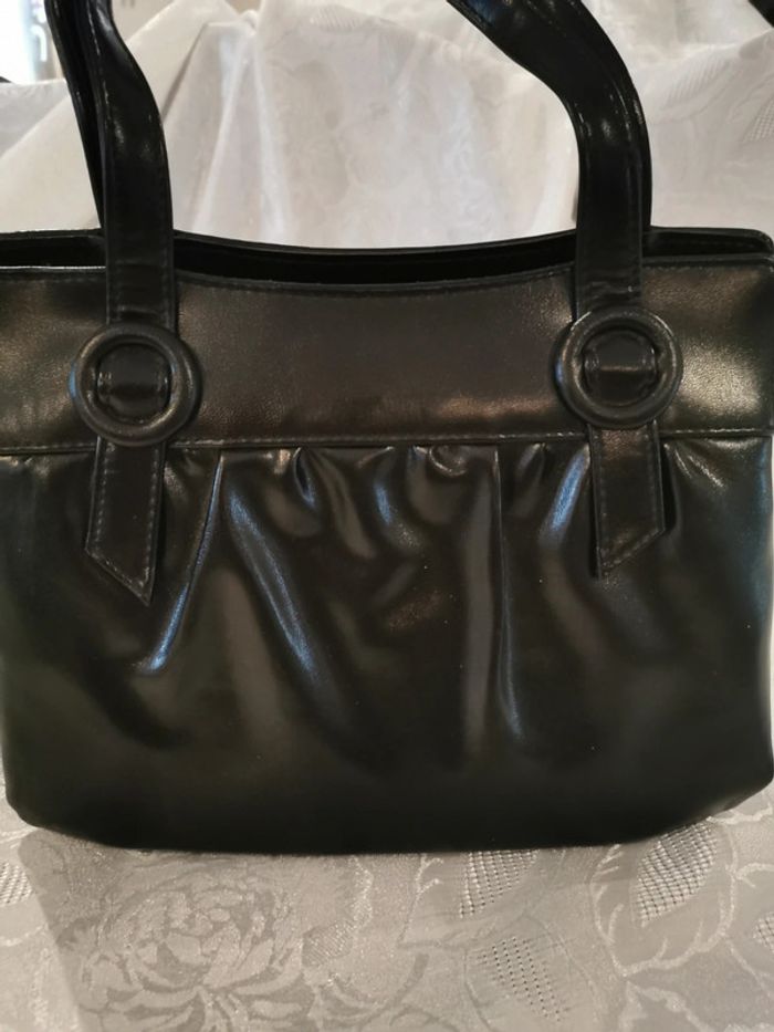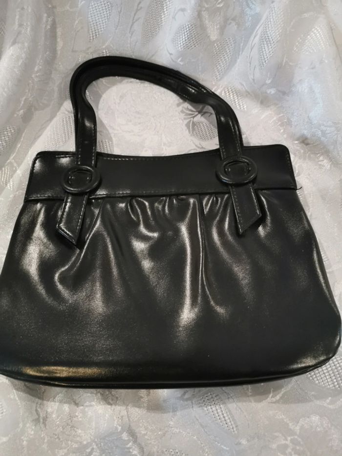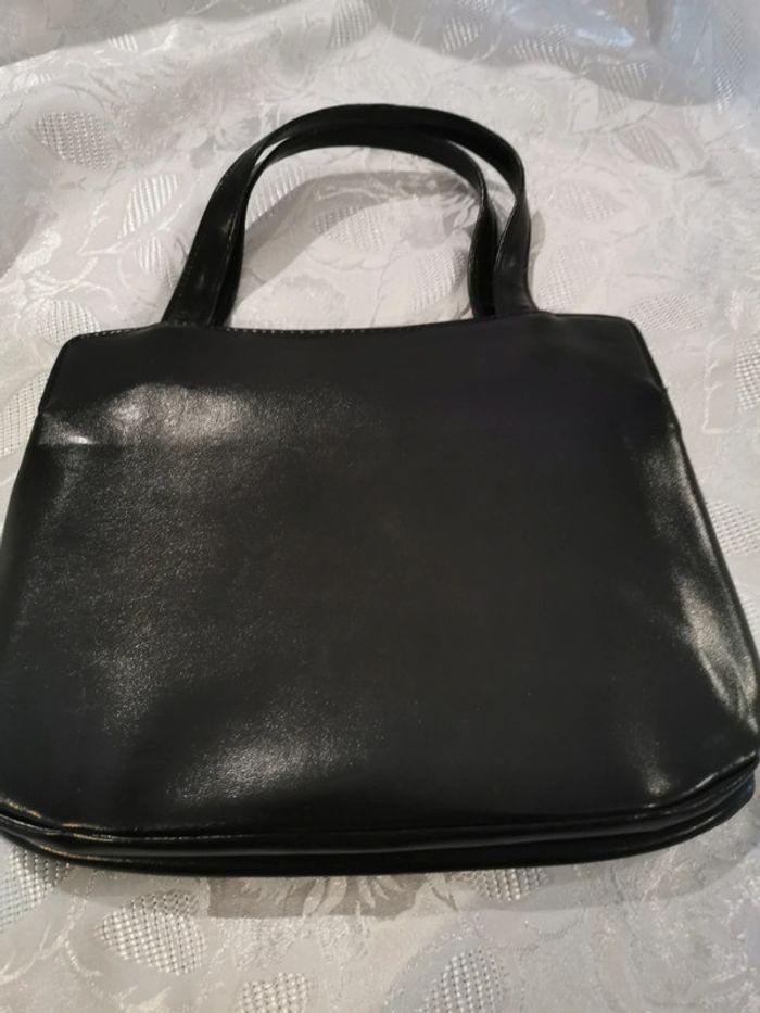 Bonjour 😊 Sac à main noir. Vintage.Esprit 70' Plusieurs compartiments,dont un avec fermeture zip. Cuir synthétique. Dimensions : Longueur 30 cm Hauteur 22 cm Largeur 8 cm Anses 15 cm de hauteur En excellent état 💕Réduction activée dès 2 articles ➡️Frais de port à 2.88 € avec mondial relay 👗Les articles textiles de mon dressing sont classés par #et par taille dans la section à propos de mon profil afin de faciliter vos recherches Bonne visite et à bientôt 😊