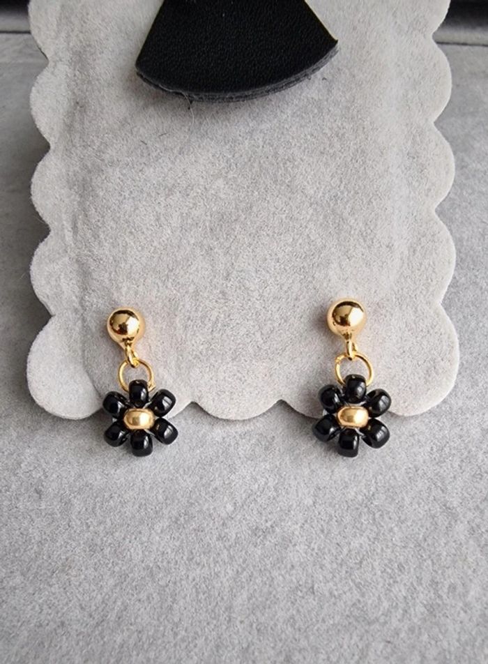 Boucles d'oreilles noires et dorées doré à l'or fin Marque Crystalia Perles comme neuve #perle&co #boucledoreillefleur #fleurs #bouclesdoreilles