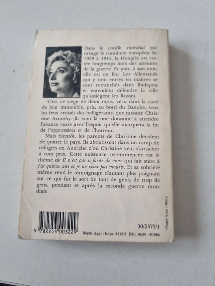 J'ai 15 ans et je ne veux pas mourir de Christine Arnothy, suici De il n'est pas si facile de vivre, livre de poche. Couverture un peu abîmée #somara66livres