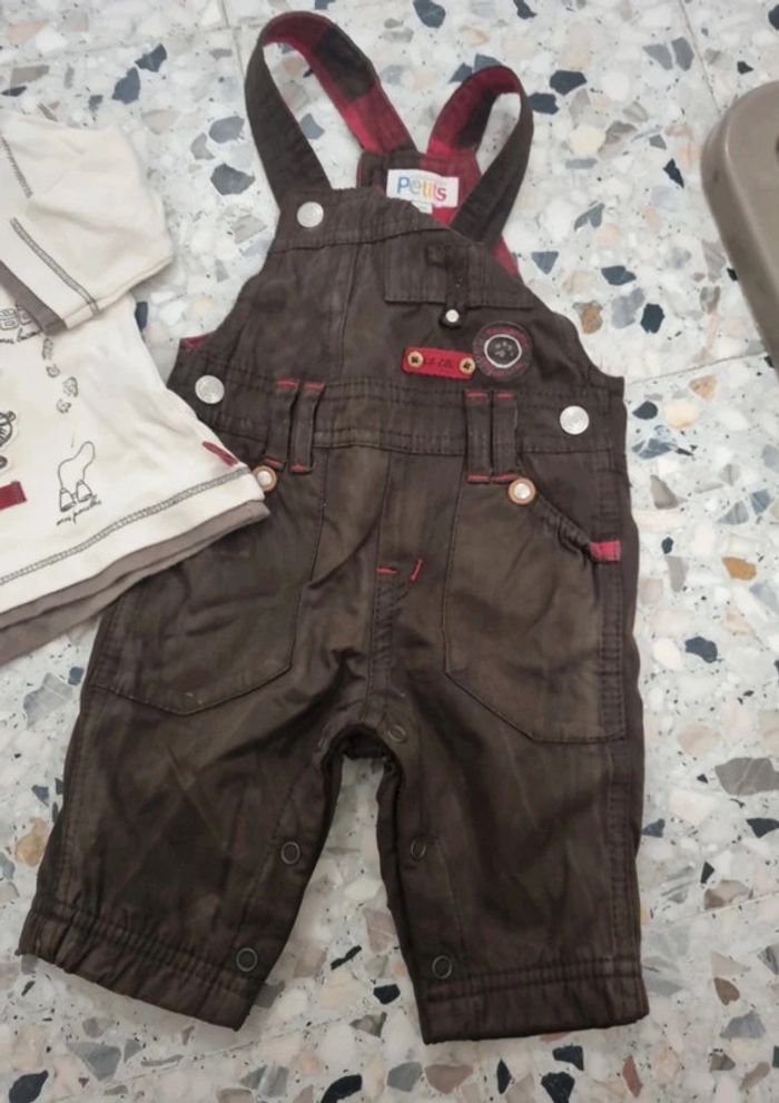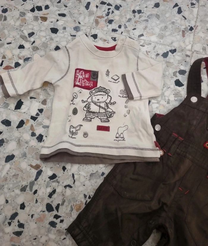 Tenue compagnie des petits comportant 1 salopette doublée et 1 Tee-shirt ML. Salopette un peu patinée cause repassage, 3 mois #somara66garcon3mois