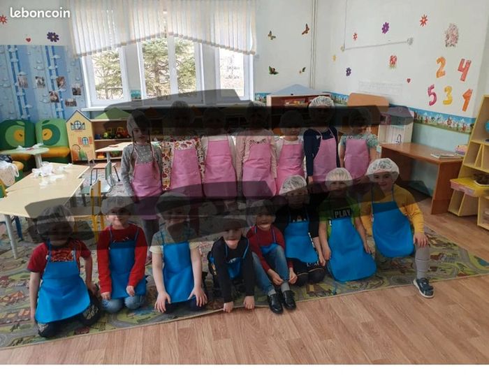 Lot de 20 tabliers + 20 bonnets enfants 4-6 ans