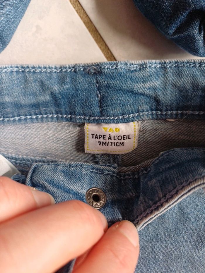 Lot de pantalons jeans 9 mois 1 orchestra et l'autre tape à l'œil porté 1 seule fois. 3.50 euros