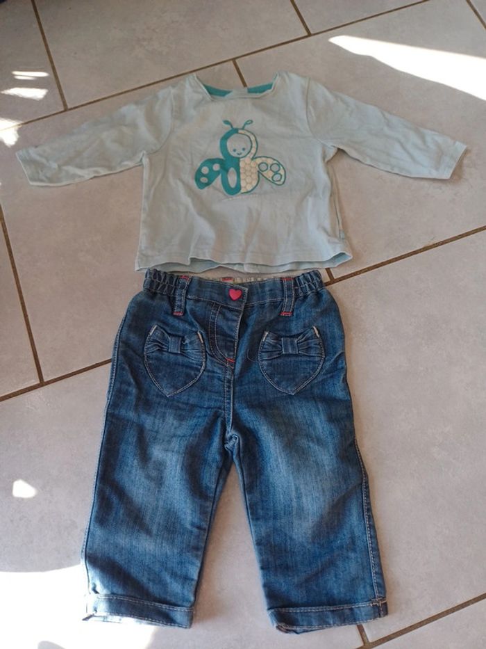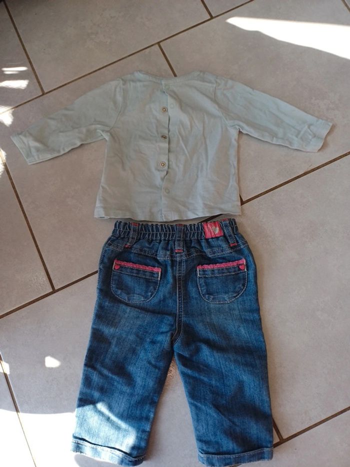 Ensemble 6 mois tee-shirt manches longues okaidi et un jeans leger orchestra . En très bon état. 3.50 euros