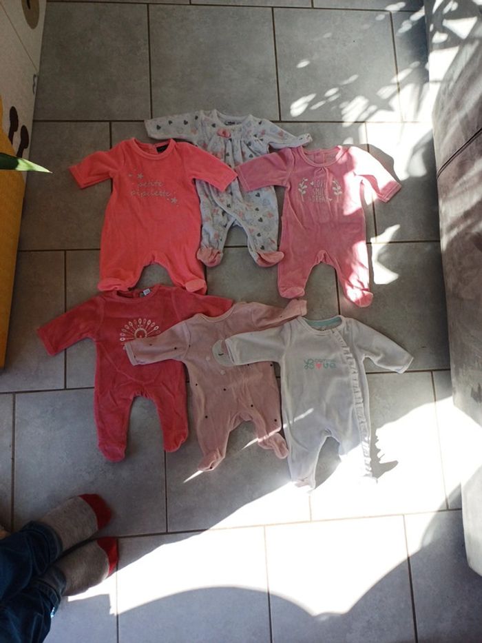 Lot de 6 pyjamas naissance en très bon état, 2 tape à l'oeil dont le blanc neuf, 1 okaidi, 1 influx, 1 kiabi et 1 gémo. 7 euros