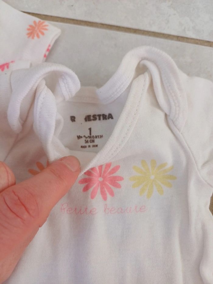 Lot de 3 bodies manches courtes de marque orchestra en très bon état juste une petite tâche jaune sur le blanc, pas de trou. 2.50 euros