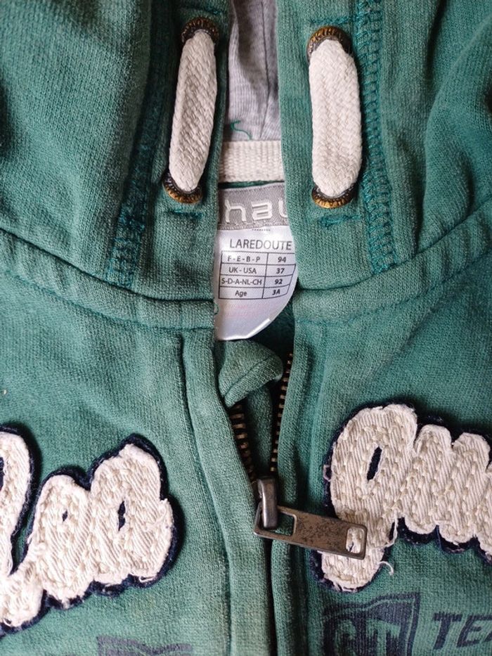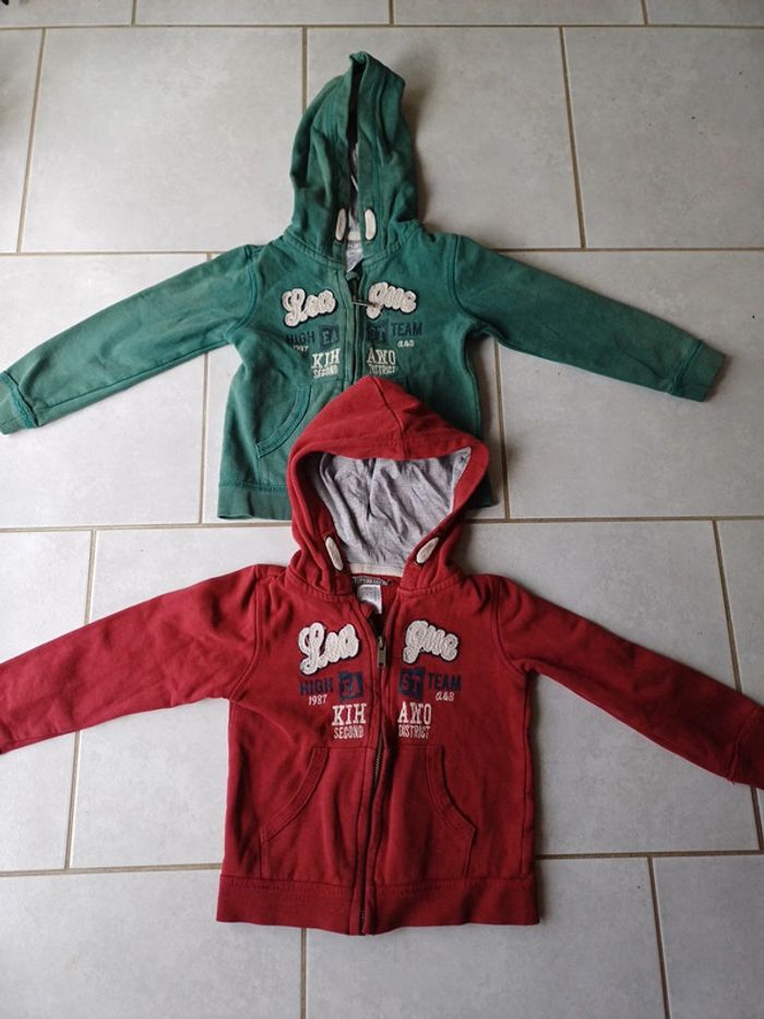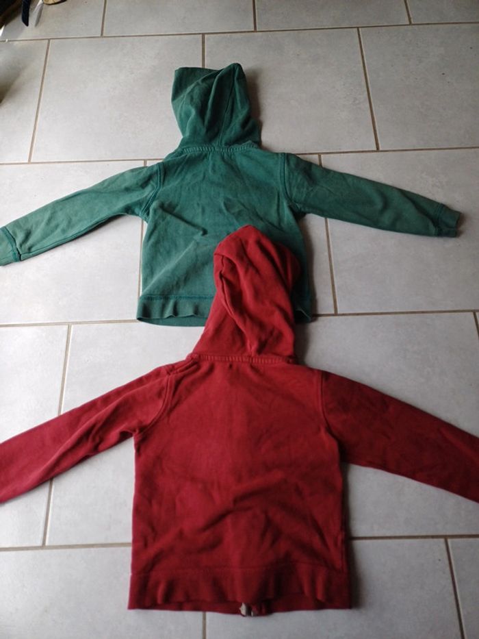 Lot de 2 gilets zippé petit 3 ans la redoute. Portés mais reste en très bon état, le vert est un peu taché et la couleur un peu déteinte. 3.50 euros