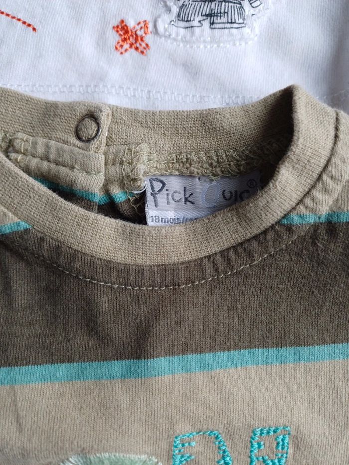 Lot de 2 tee-shirts manches longues 18 mois pick ouic et la compagnie des petits en très bon état, 3,50 euros