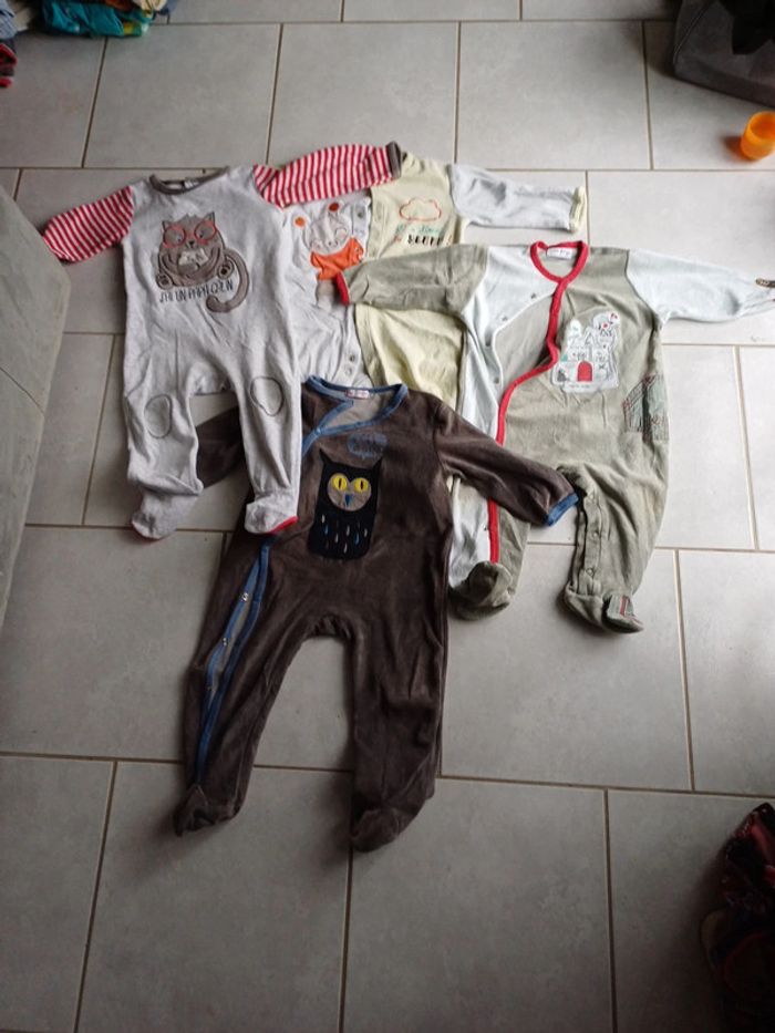Lot de 4 pyjamas 18 mois,dpam, sucre d'orge,gémo, kitchoun, tachés pour certains le dpam pression du col accroche partie,aucuns de troué. 5 euros