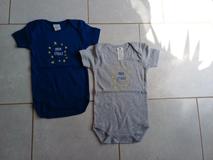 Lot de 2 bodies tissaia manches courtes 12 mois neuf. 4 euros