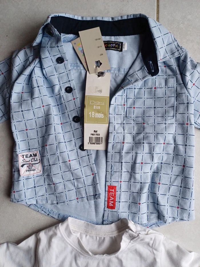 Ensemble chemise et tee-shirt chicaprie 18 mois, jamais porté, 7 euro