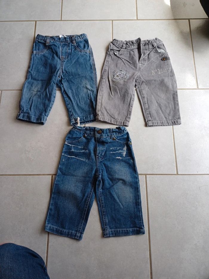 Lot de 3 pantalons jeans 12 mois portés mais reste en très bon état. 4 euros