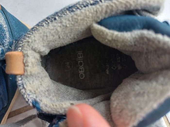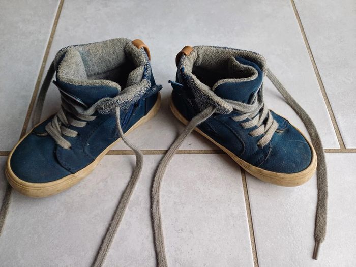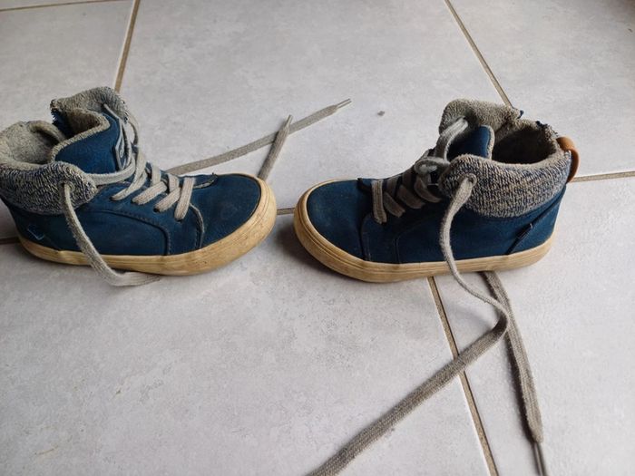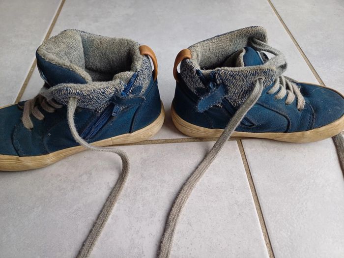 Chaussures bleues okaidi fermeture sur le côté taille 24 portées mais reste en très bon état. 3 euros