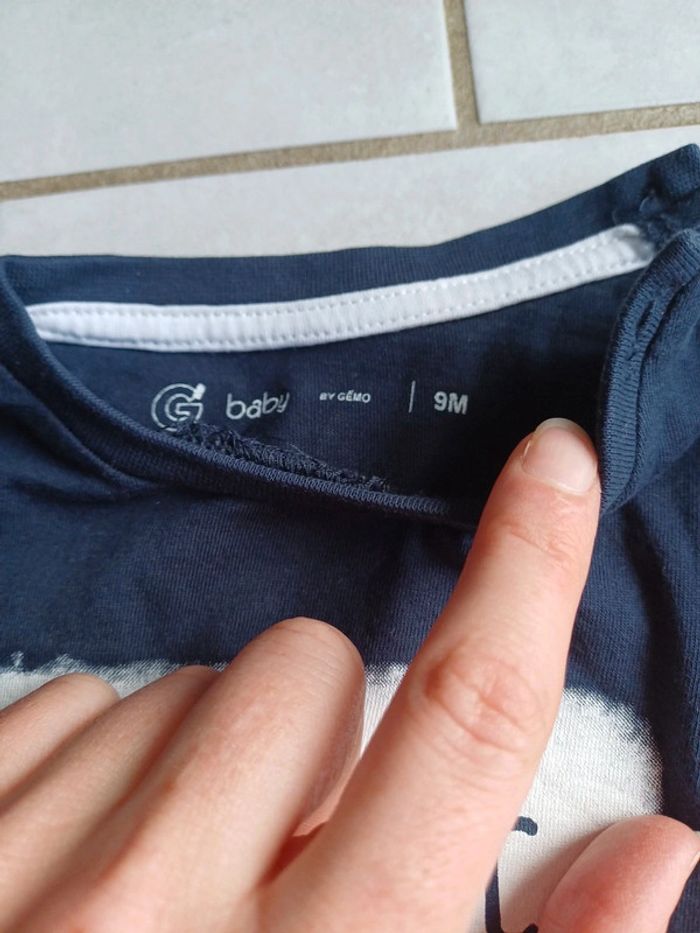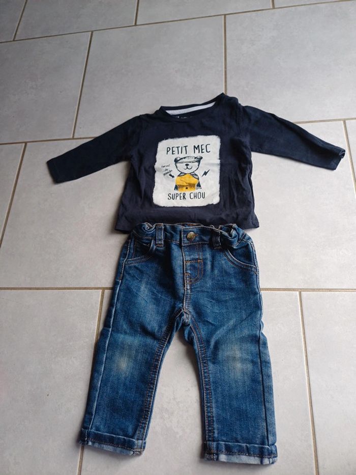 Ensemble tee-shirt manches longues et jean 9 mois Gemo. En très bon état. 5 euros