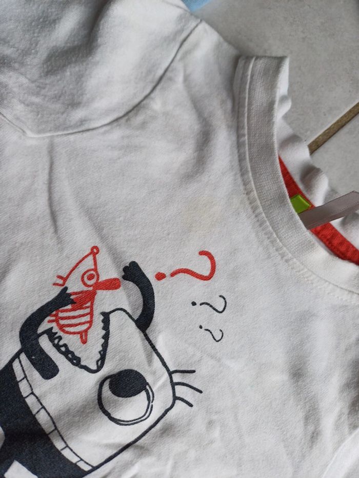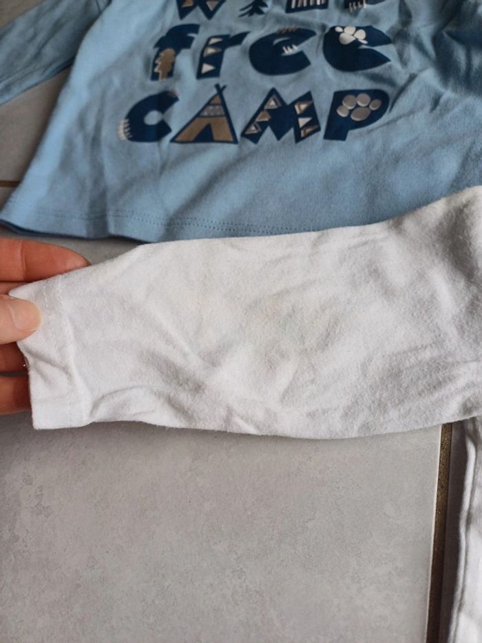 Tee-shirts manches longues épais tachés6 mois orchestra et l'autre sans marque. 2,50 euros