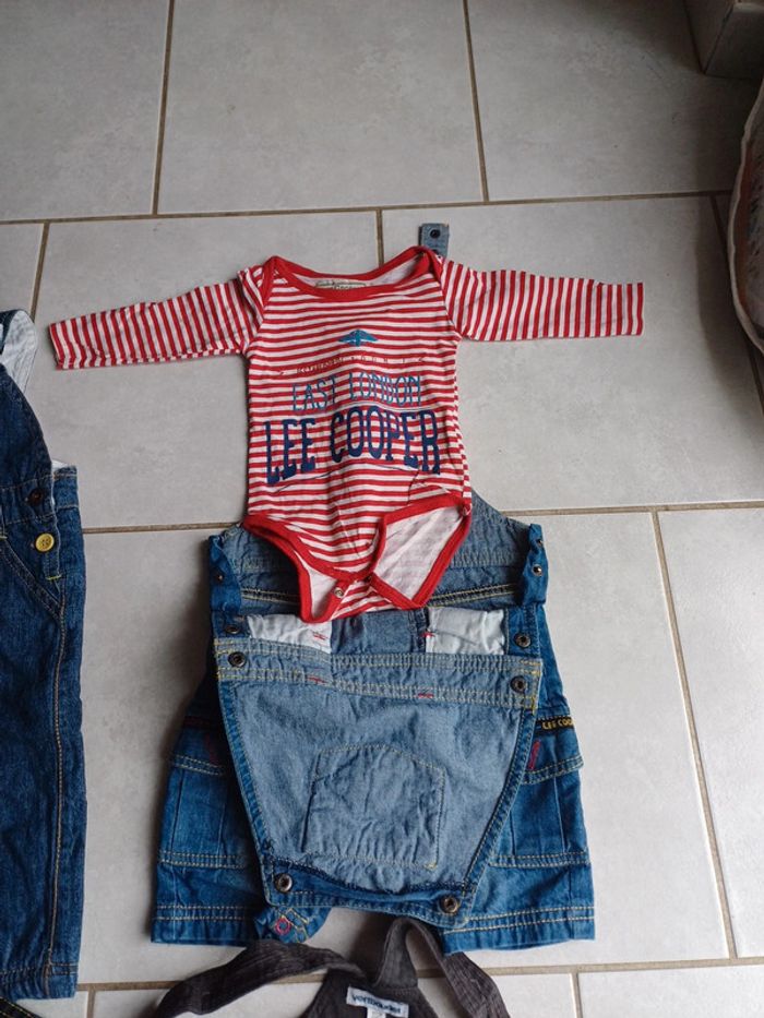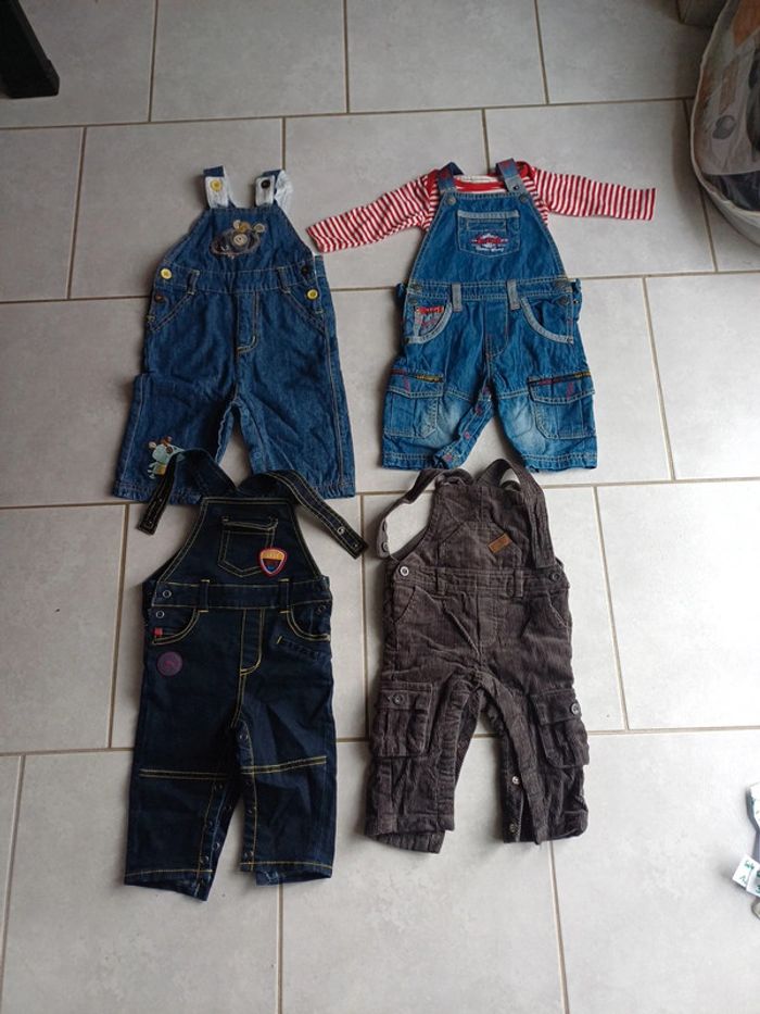 Lot de 4 salopettes 6 mois, marques orchestra,vertbaudet,boite à Malice et 1 lee cooper avec bodie, très peu portées voir neuf. 8 euros