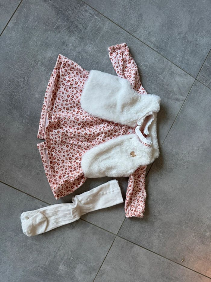 Ensemble robe + gilet réversible + collant 6 mois