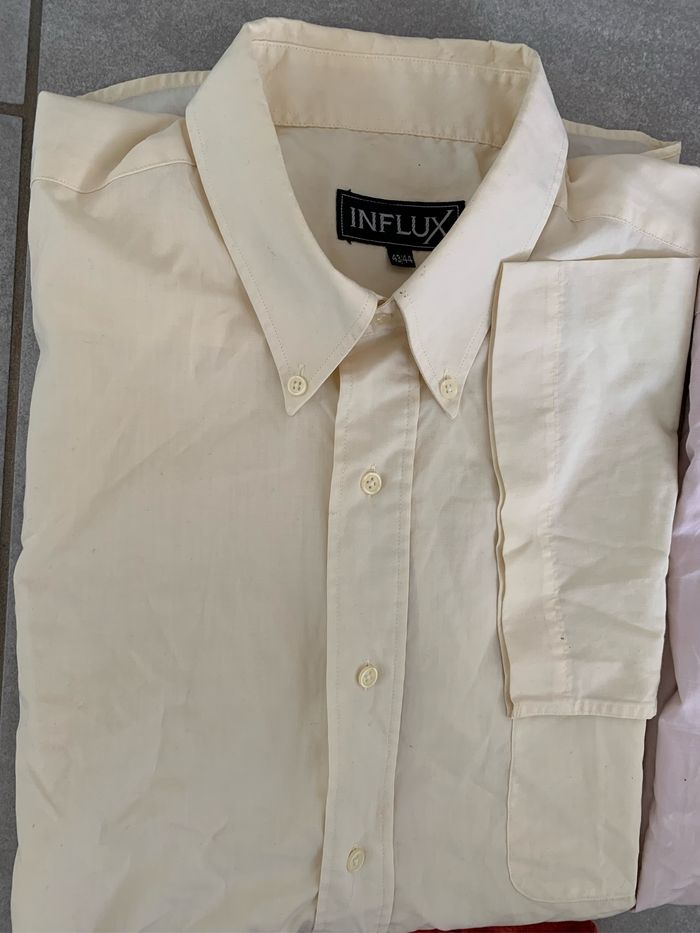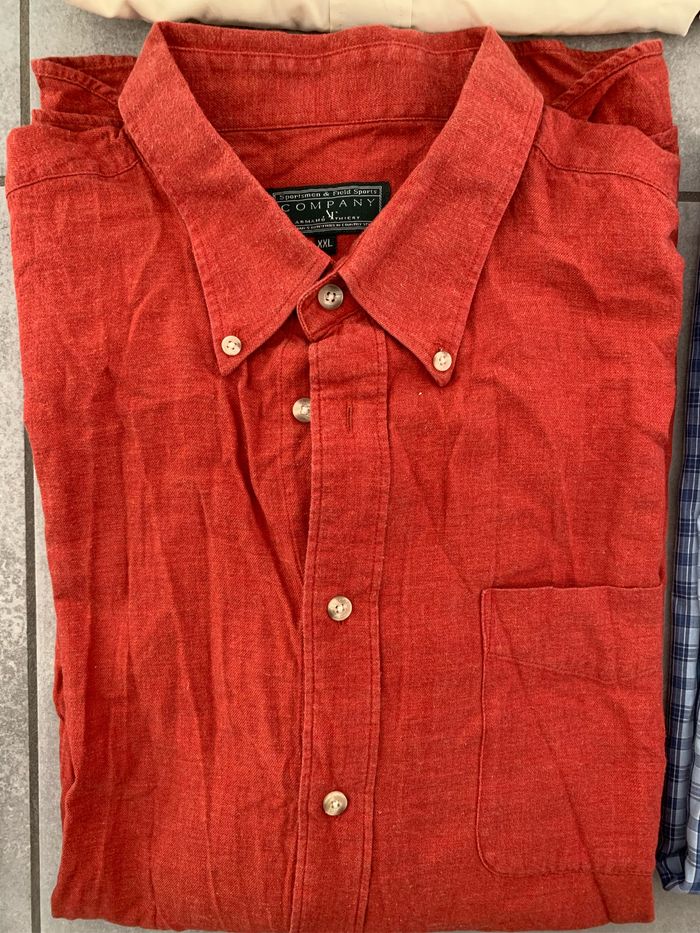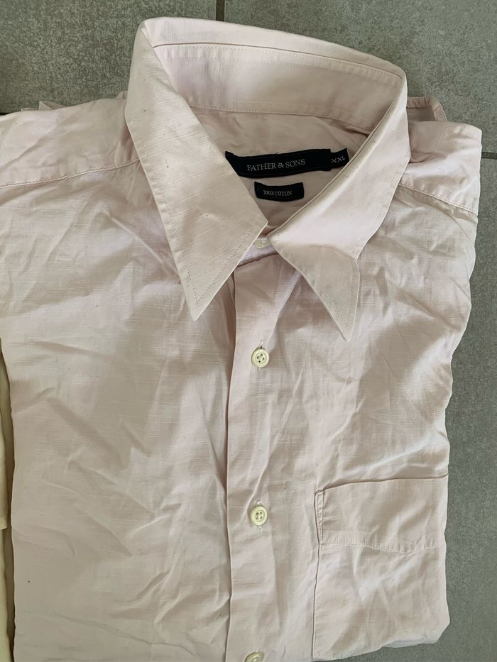 Lot 4 chemises taille XXL 1 chemise ML rose pale XXL 1 chemise ML rouille en lin XXL 1 chemise ML bleu (manque un petit bouton mais 2 sur l’étiquette sont fournis) 43/44 1 chemisette jaune pâle 43/44 Envoie rapide 📦 N’hésitez pas à consulter mon dressing pour regrouper vos achats car beaucoup d’articles à petits prix 😊