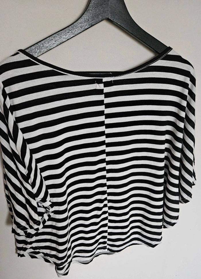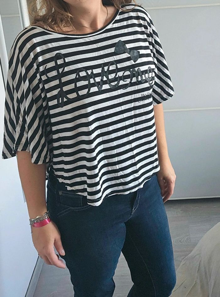 📌 Lot 20% de remise pour l'achat de 5 articles, suite ... T-shirt blanc à rayure noir, manche courte chauve souris, coupe sympa et original, ➡️Longueur 52 cm ➡️ 80 % coton 20 % polyester ⭐ Excellent état ✈Envoi rapide des colis 💗 Abonnez vous à mon profil, nombreux articles ajoutés régulièrement ! 🌸 Tapez Laetitresors pour voir mes annonces #laetitresors_tshirt38 #tshirt #court #molly #bracken #rayure #rayée #noir #manche #courte #chauve #souris #love #laetitresors