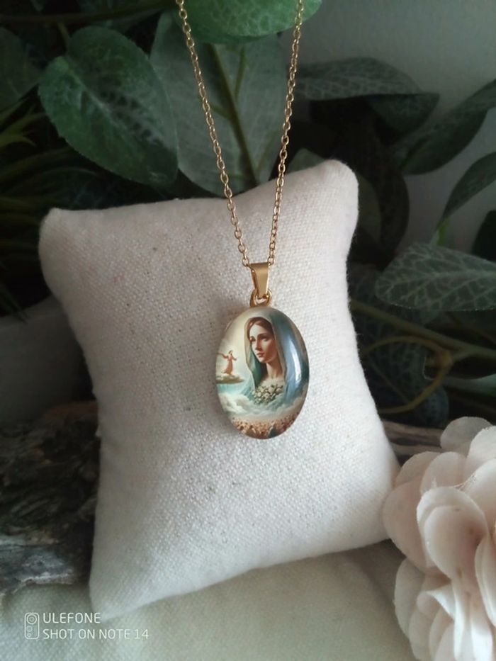 Collier pendentif de la Vierge Marie en verre - photo numéro 1