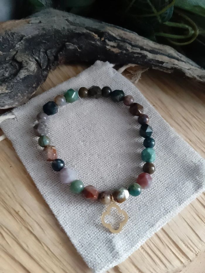 Bracelet pierres d'agate indienne et trèfle à 4 feuilles - photo numéro 2