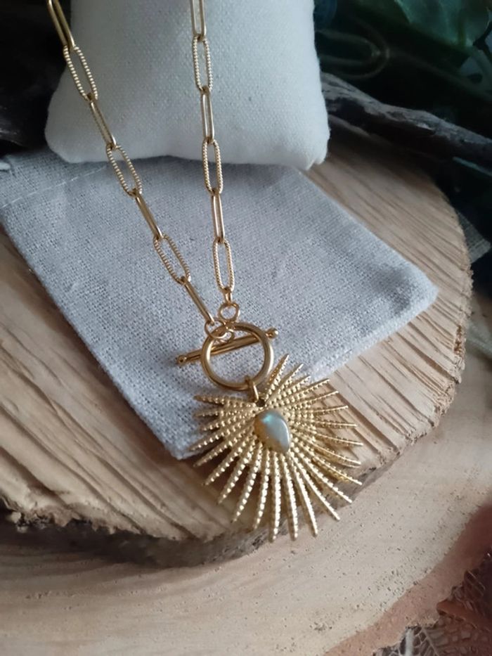 Collier cœur soleil et pierre de labradorite naturelle - photo numéro 1