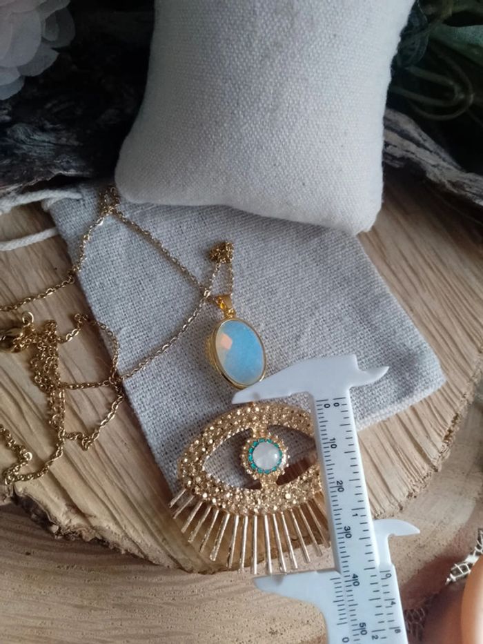 Collier oeil soleil  pierre de lune et opaline - photo numéro 2