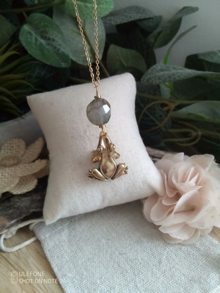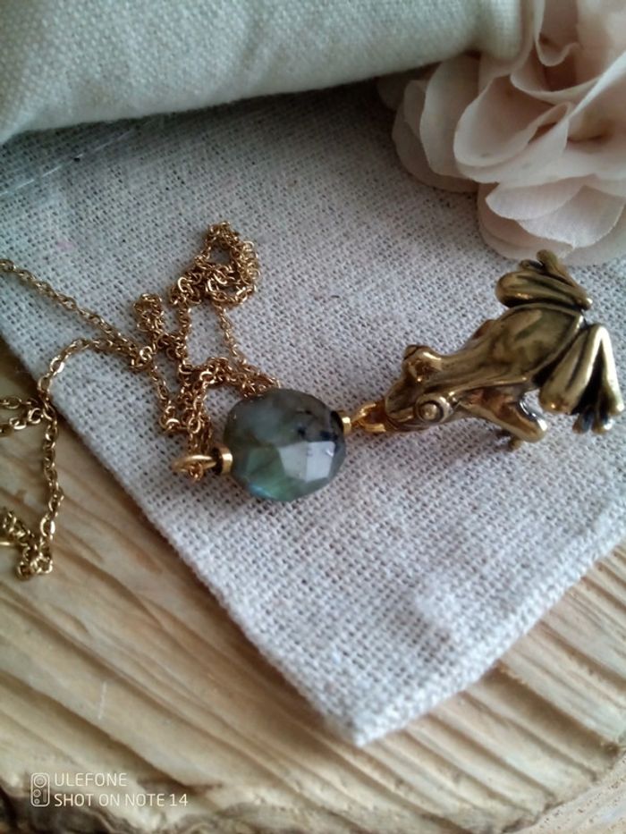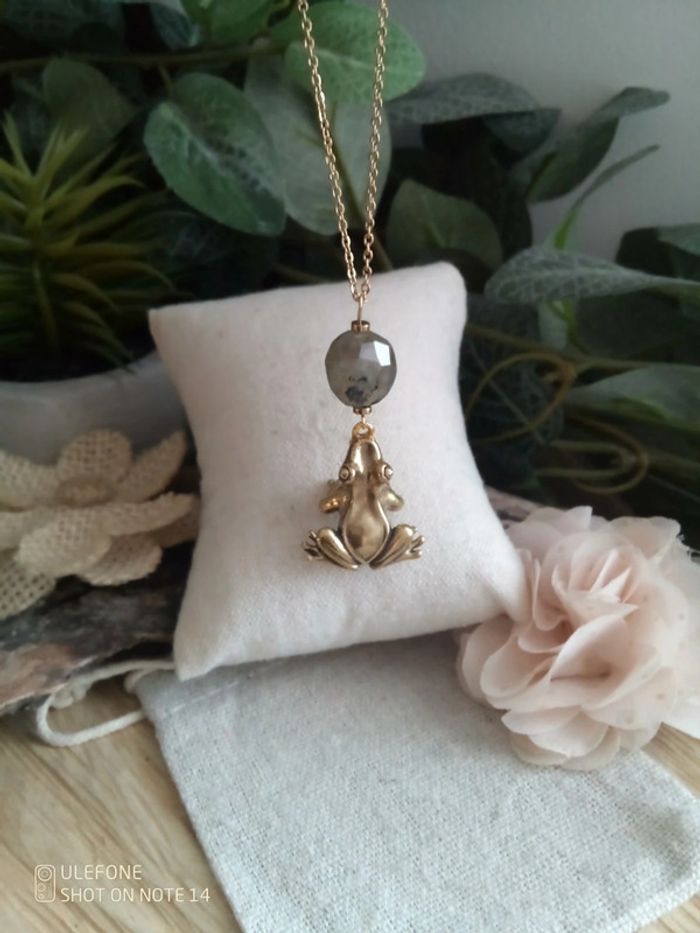 Collier labradorite pierre naturelle et grenouille - photo numéro 1