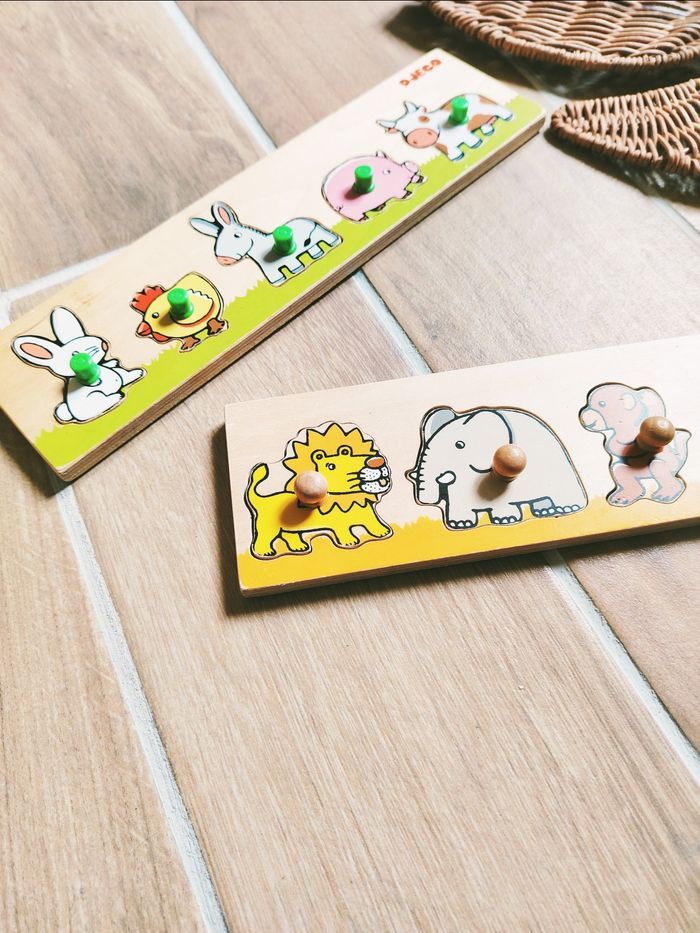 🐑 Jeu de motricité fine-Lot 2 Puzzles en bois animaux de la ferme et savane marque Djeco JB250/251 🎀Convient dès l'âge de 2 ans 🎀Ce lot de 2 jolis puzzles est idéal pour apprendre les différents animaux de la savane et de la ferme ✨Avec tenons pour faciliter la prise en mains ✨Un puzzle avec 5 animaux de la ferme ✨Un puzzle avec 5 animaux de la savane ❇️N'hésitez pas à créer un lot pour économiser sur les frais de port❇️ Premier âge, Jouet bébé, Jouet d'activité, Jouet ludique, Jouet eveil, Mémorisation, Memoire, aptitude, motricité, jeu Adresse, Montessori, jeu bois, Jouet bois, Jouet vintage, Jeu adresse, jeu apprentissage, dextérité, jeu sensorielle, jeu educatif, activités et Jouet pour bébé, trier empiler, encastrer, jeux et jouets