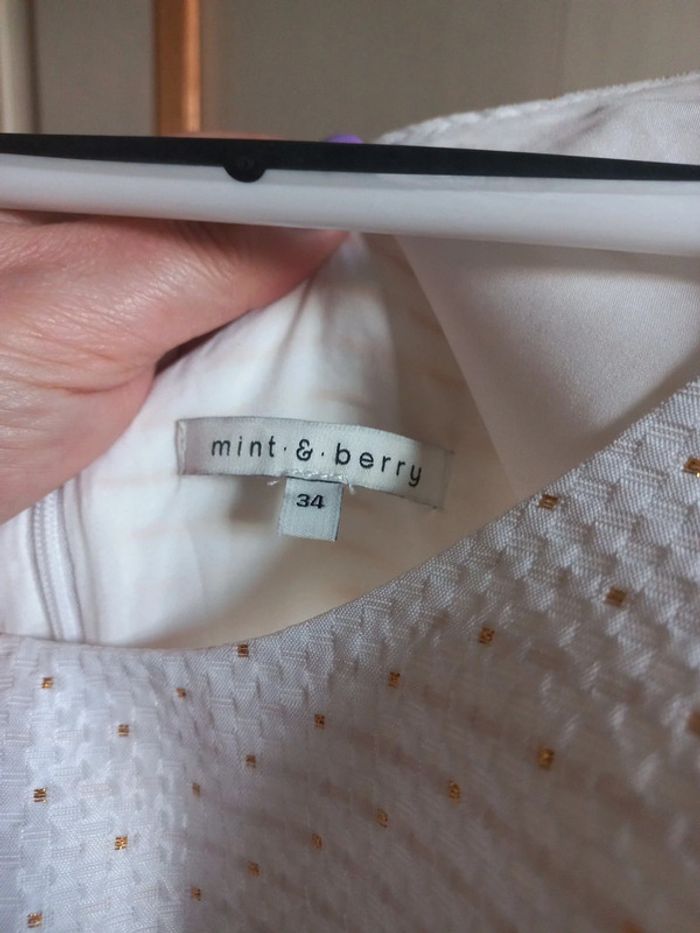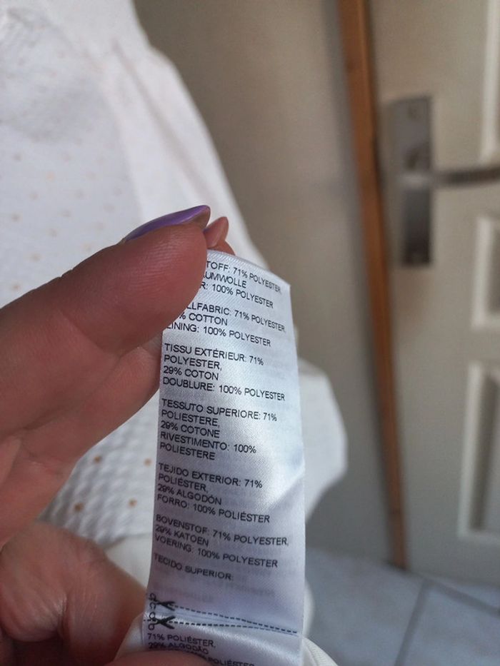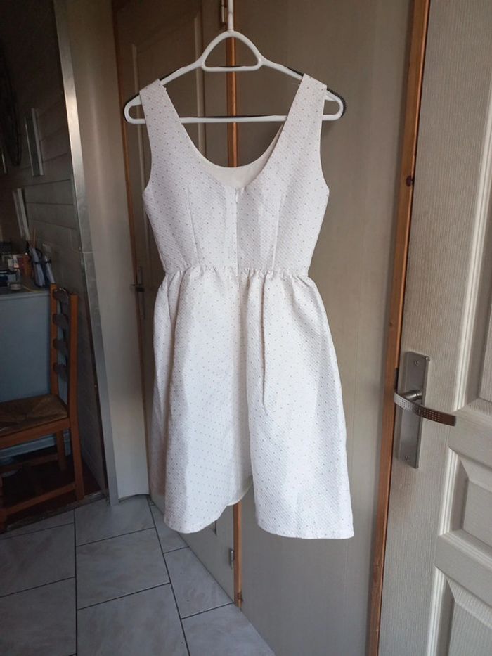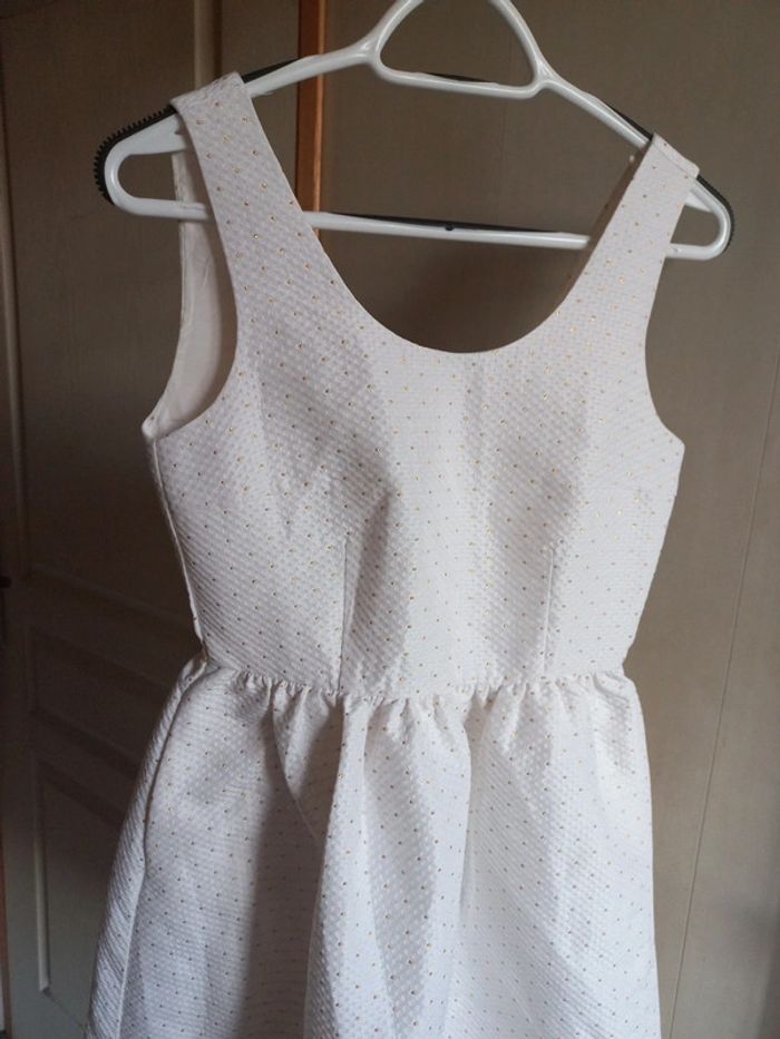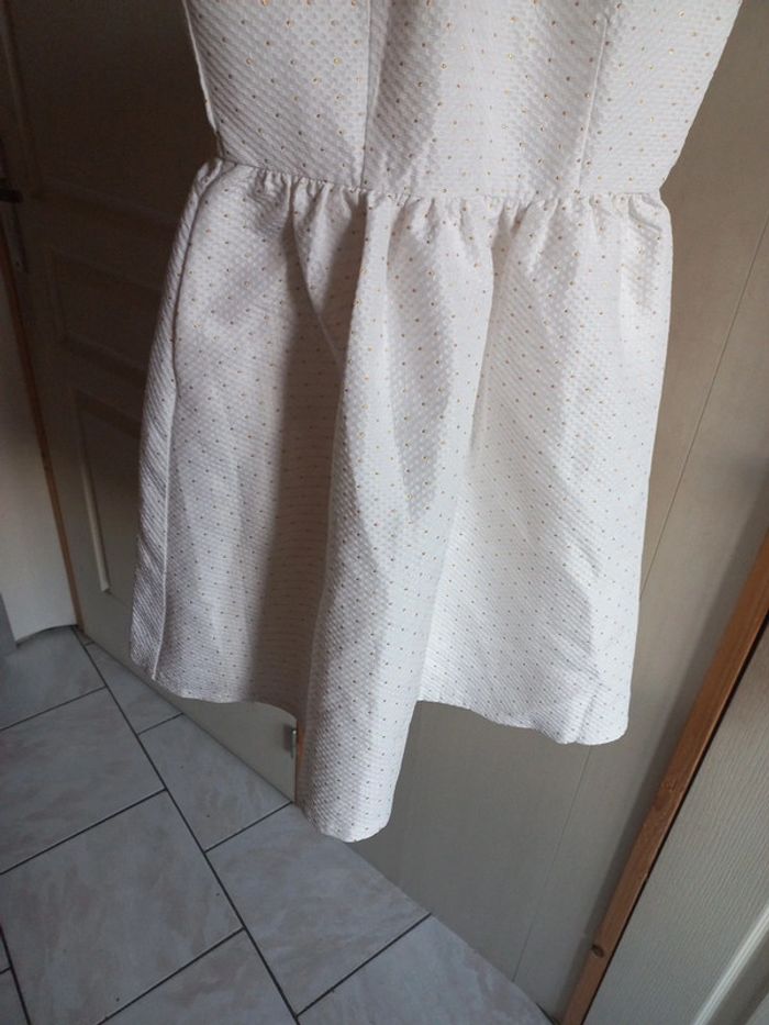 Robe de cérémonie Blanche à pois doré Taille 34 Aisselle à aisselle 40 cm Taille 35 cm