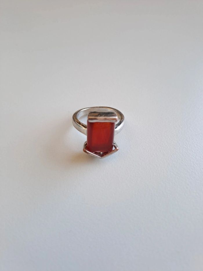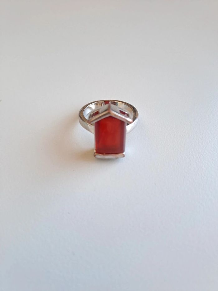 Bague fantaisie métal argenté pierre rouge - photo numéro 1