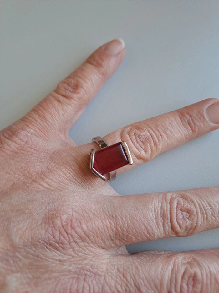 Bague fantaisie métal argenté pierre rouge - photo numéro 4