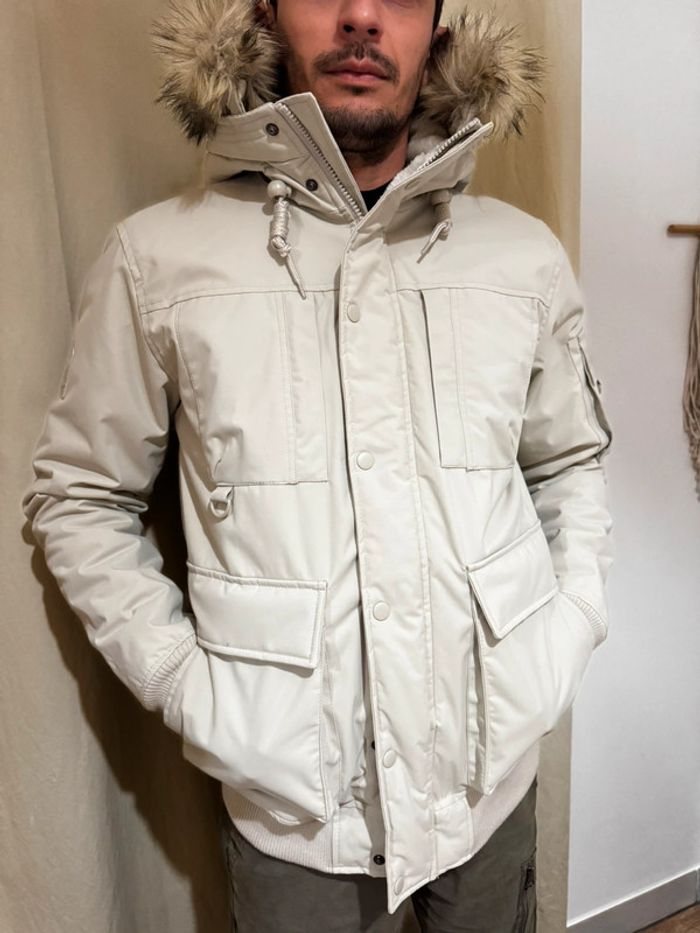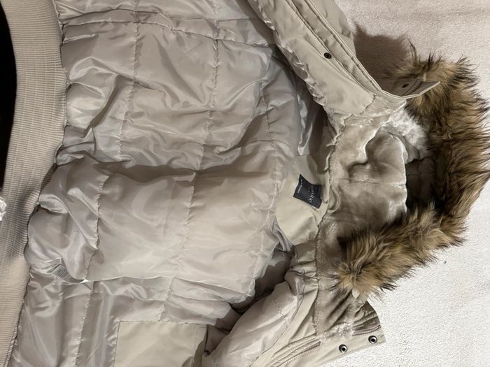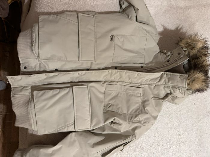 Très belle veste Primark neuve beige, taille S Multiples poches, fausse fourrure à la capuche.