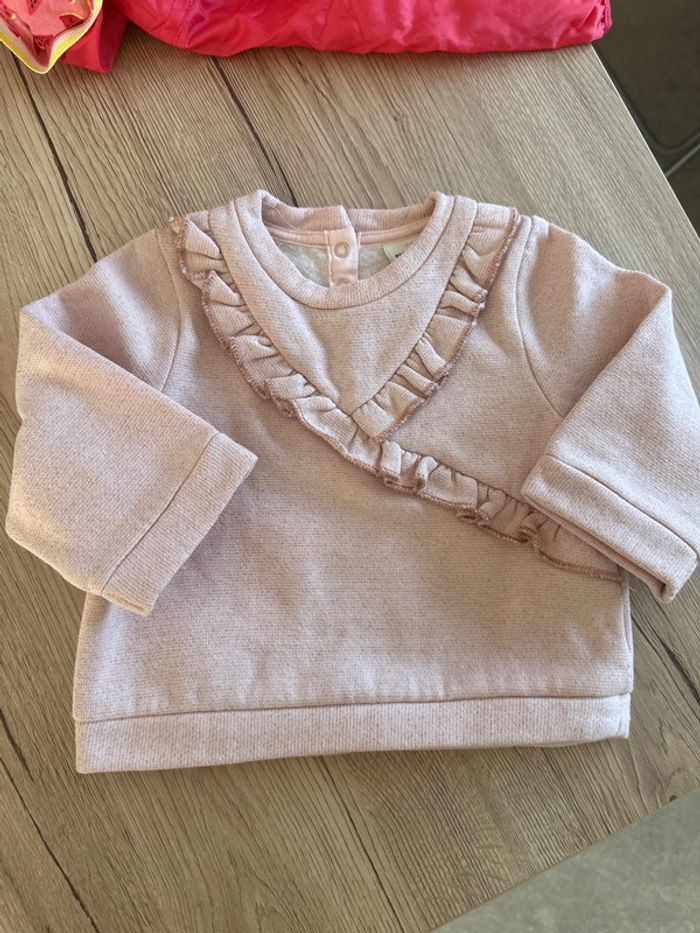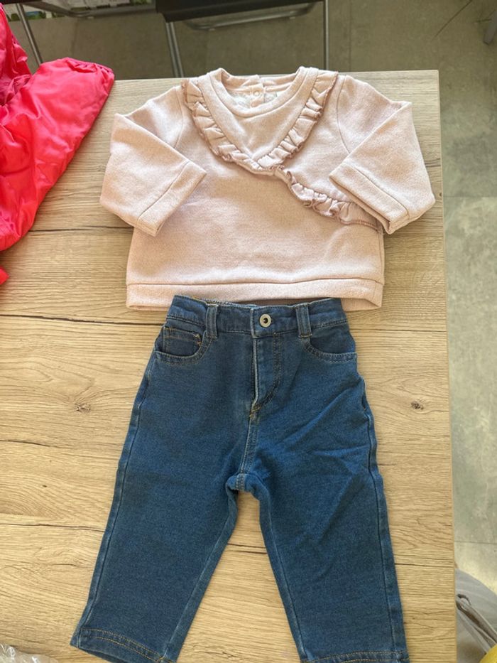 Ensemble fille taille 6 mois Pull rose avec volants tape à l’œil Jean taille élastique U tout petits Excellent état #6moisroms1387