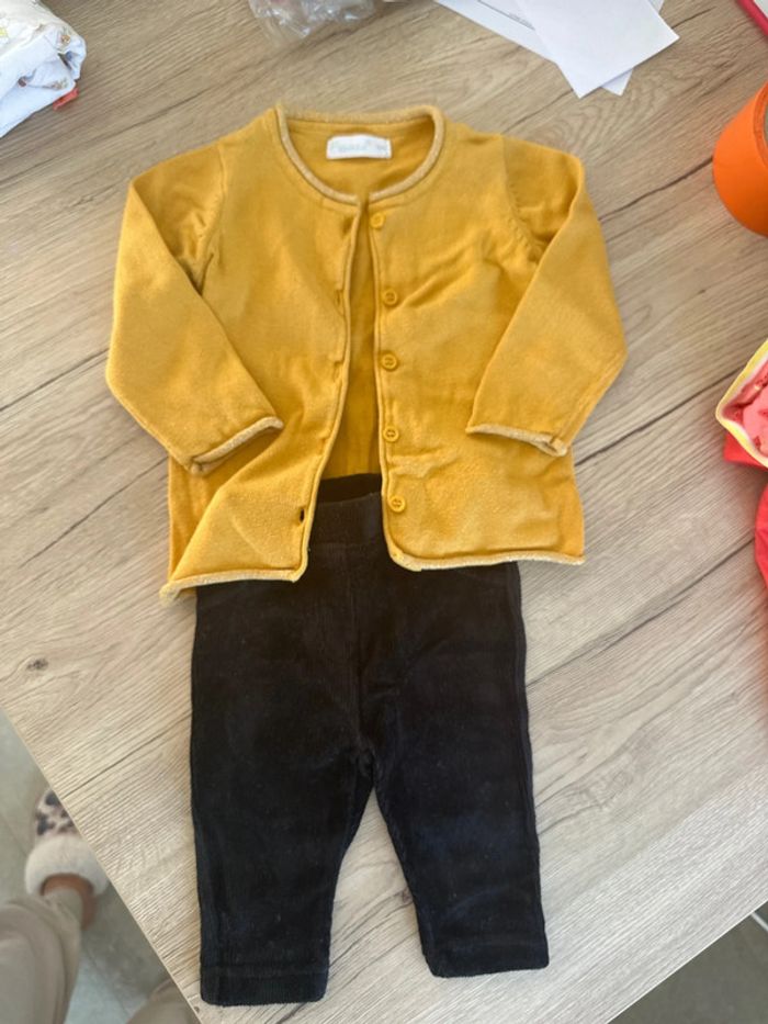 Ensemble bébé rêve taille 6 mois Gilet couleur moutarde Pantalon velours noir Très bon état #6moisroms1387