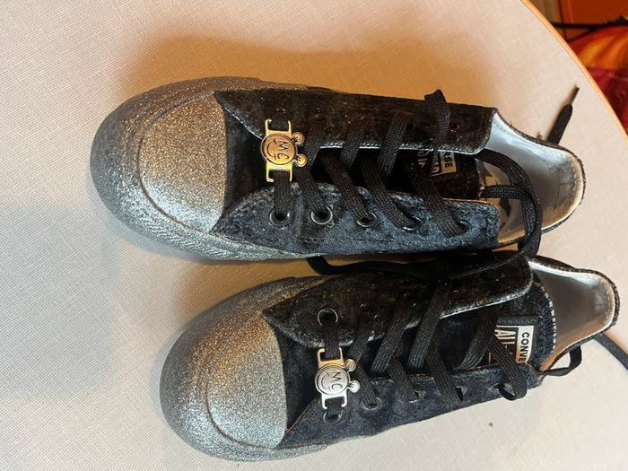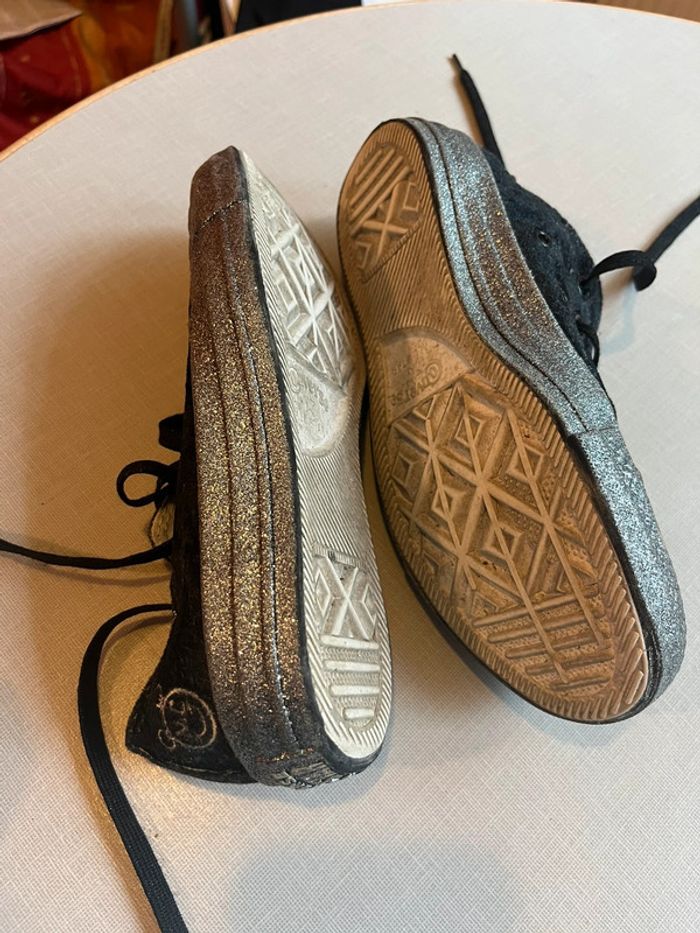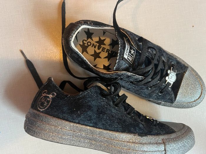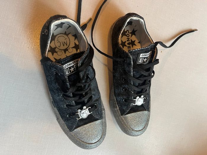👟Converse en velours noir brillant, et semelle grise pailletée, édition limitée. 📏Pointure 35 🌺Très bon état, peu porté. Mais ont pris un peu la poussière. 🌺Réductions sur les lots activées. 🌺Dressing trier par catégories/tailles dans : À propos #cocobtl6_taille35