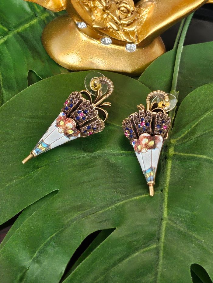 Boucles d oreilles vintage parapluie en argent sterling 925 gold - photo numéro 1