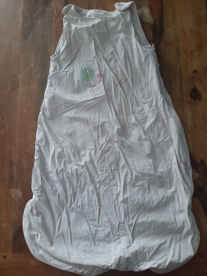 Gigoteuse fille légère fermeture éclair adaptable avec boutons pressions pour adapter la taille. La tâche de la fermeture présente des marques d'usure voir photos