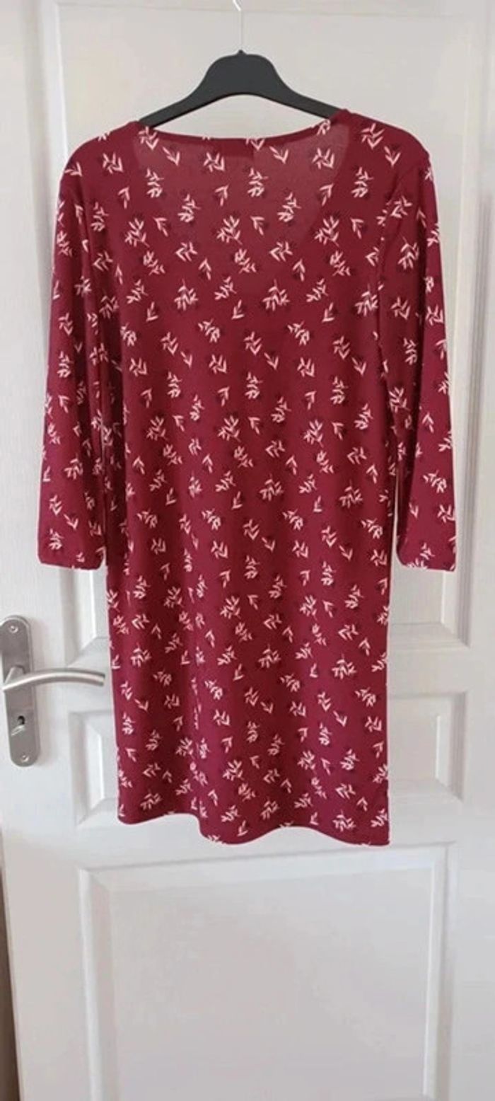 Robe femme bordeaux fleurie, manches 3/4, taille S, en bon état. - photo numéro 3