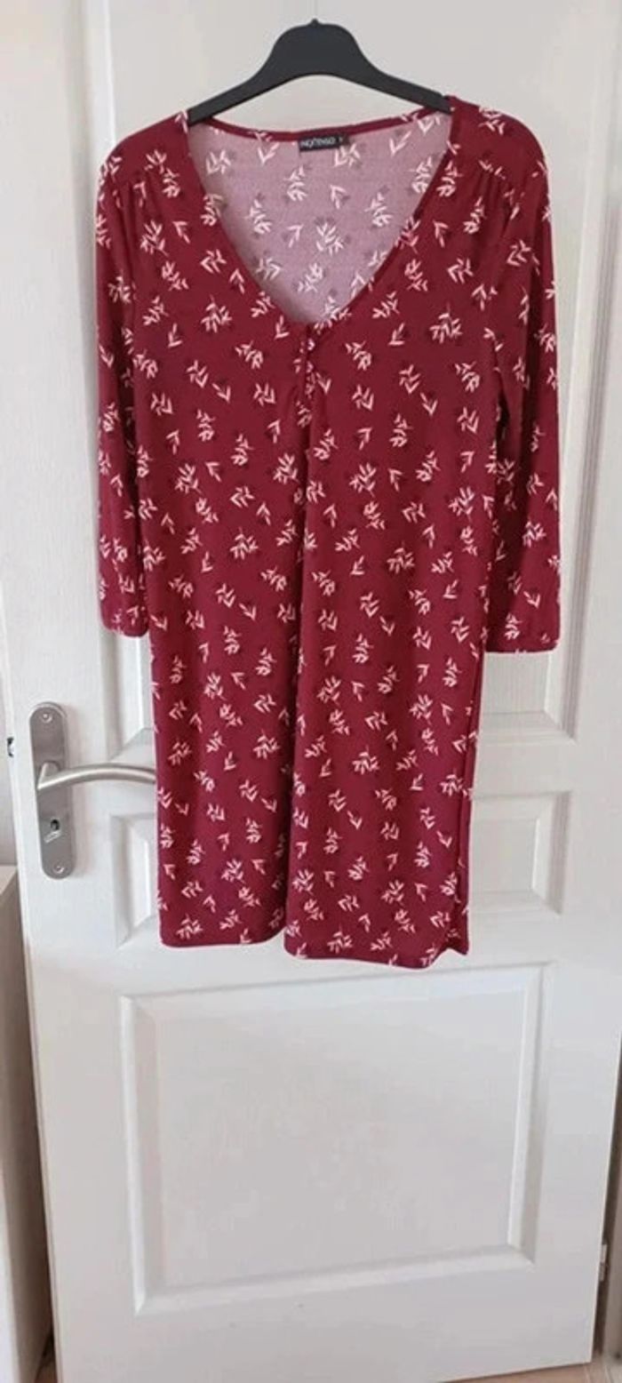 Robe femme bordeaux fleurie, manches 3/4, taille S, en bon état. - photo numéro 2