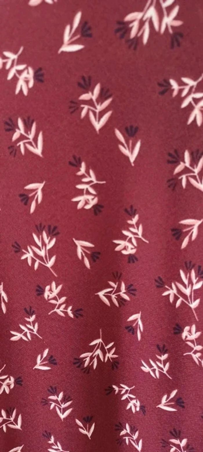 Robe femme bordeaux fleurie, manches 3/4, taille S, en bon état. - photo numéro 5