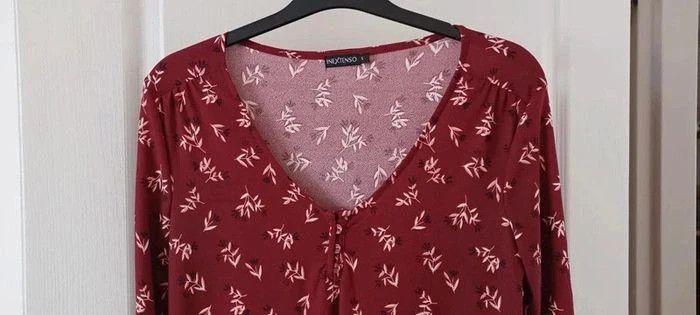 Robe femme bordeaux fleurie, manches 3/4, taille S, en bon état. #smiiile93_femmetaille36 #robefemme36 #robefemmeinextenso #tailles #femmetailles #inextenso