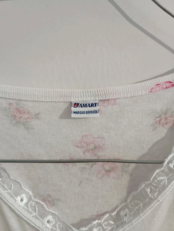 Débardeur fleuri col dentelle taille M Damart vintage 100% coton Coton peigné très agréable à porter. Neuf, lavé car issu d'un deadstock Fond blanc , fleurs roses, assez long
