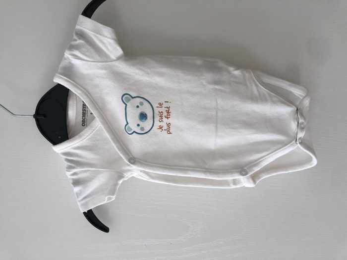 Joli body manches courtes, ouverture à l'avant Motif ours Marque Orchestra Taille 1 mois, 54 cm