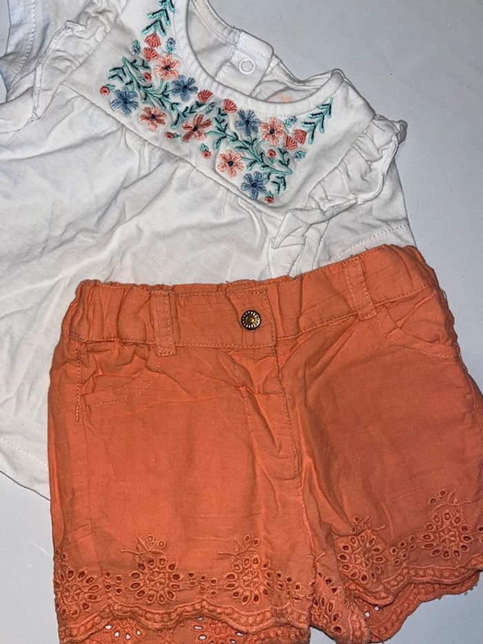 Short broderie et t shirt fleuri 6 mois Tbe C&a