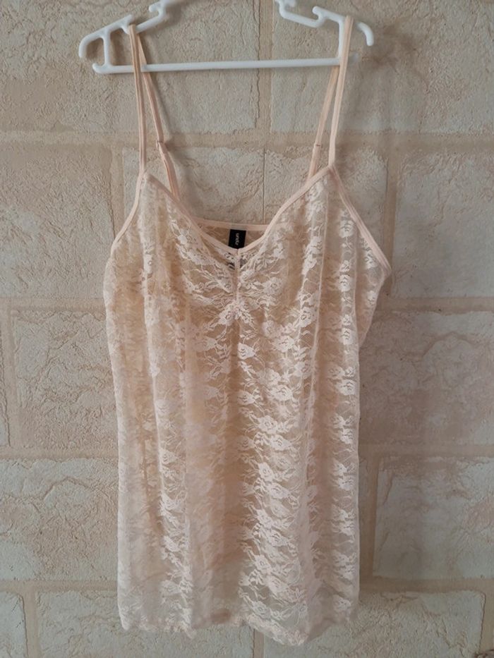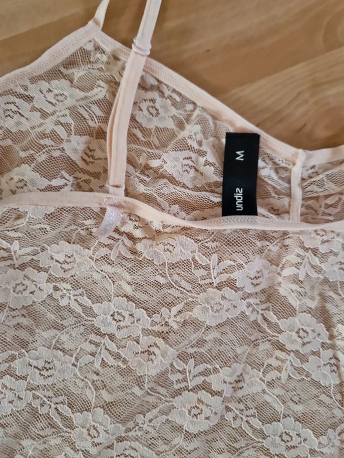 Haut à bretelle transparent en dentelle UNDIZ taille M Lingeries sexy Fleur Couleur chair #lingeriesexy #hautsexy #dentelle #Fleur #transparent #top #manchescourtes #pyjamas #lingerienuit #38