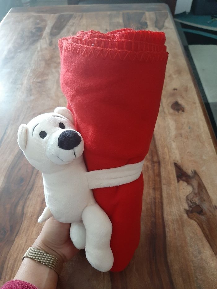 Plaid pour enfant avec petite peluche à scratch